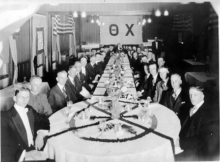 Twenty-one members returned to the university that fall, but three left for service before the semester began, and they were followed shortly afterwards by nine of their brothers. Despite these disruptions, at the end of the first semester of 1917-18, Alpha Sigma Tau ranked second among all social fraternities academically and third in total membership, and the following semester it placed third in inter-fraternity basketball. Theta Chi ChapterFinally, on March 18, 1918, a message from the Grand Chapter of Theta Chi was read at the dinner table: “Your petition has been granted and you are hereby authorized to organize yourselves into a chapter of the Theta Chi Fraternity to be known and styled The Psi Chapter of Theta Chi Fraternity.” After much correspondence with the Grand Chapter, installation was set for Saturday, May 4, 1918.7 Brothers Joel W. MacGregory (Epsilon ‘13) and Wilbur C. Searle (Epsilon ‘07) arrived on May 2 from Massachusetts, and were joined by Fred Putney of Madison to form the installation committee. Thomas H. Brock, an active from Rho Chapter, arrived from Illinois on Saturday morning to assist them. The installation ceremony began at 1 p.m. Saturday in the chapter house. Twenty-four men were initiated as active members from Alpha Sigma Tau, and six more were initiated as alumni members. 8 With the installation of the charter members, the officers of the new Psi Chapter were elected and installed. Walter E. Malzahn, who had joined Alpha Sigma Tau only two months earlier, became the first president of Psi Chapter. The new officers then proceeded to initiate their first two pledges. There being no further business, the meeting was closed at 6 p.m. On the official roster of Psi Chapter, Fred Fuhrmann’s name was entered as No. 1 for his position as founder of the chapter.9 The brothers went from the ceremonies to an installation banquet at the Madison Club that evening. Following dinner and a toast by MacGregor, the active members, alumni, and committee members took turns giving speeches, and Dean Goodnight closed the banquet with a speech on “Wisconsin and Theta Chi.” An installation dance was held the next Saturday evening at the parlor of Lathrop Hall. In according with the tradition of Wisconsin fraternities, the newly installed chapter, the 35th chapter of a national fraternity to be established at Wisconsin, and the 29th chapter of a national social fraternity, invited each fraternity on campus to elect a delegate to attend.