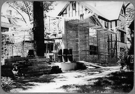 With the satisfaction of the property’s original mortgage in 1963, Psi Chapter launched ambitious plans under Dale Jennerjohn (‘44) of Rattle and chapter president Ted Pamperin (‘64) to demolish the house and build a two-story brick building with a side entrance and a chalet-style front. But those plans were gradually scaled down when a sufficient loan could not be floated for the construction, and eventually the old structure was kept and a front addition was built in the summer of 1964, adding a basement kitchen, dining room, and bar, and a second-floor living room. The living room, parlor, and dining room of the old house were converted into first-floor bedrooms, and the old basement barroom became a cooler room.